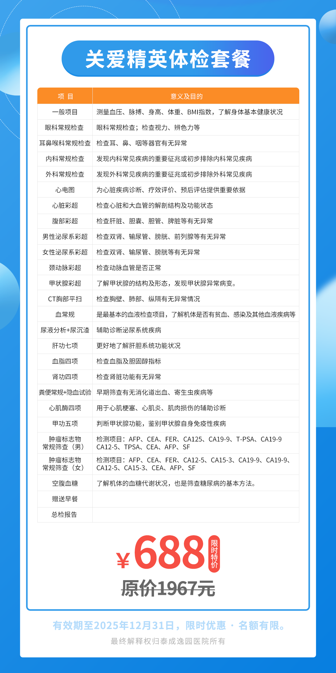 ✅ 关爱精英体检套餐 · 688元(原价1967元)
