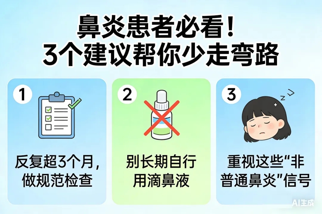 1、鼻炎反复超 3 个月?赶紧做规范检查!别再 “凭感觉用药”,找准根源才是关键;